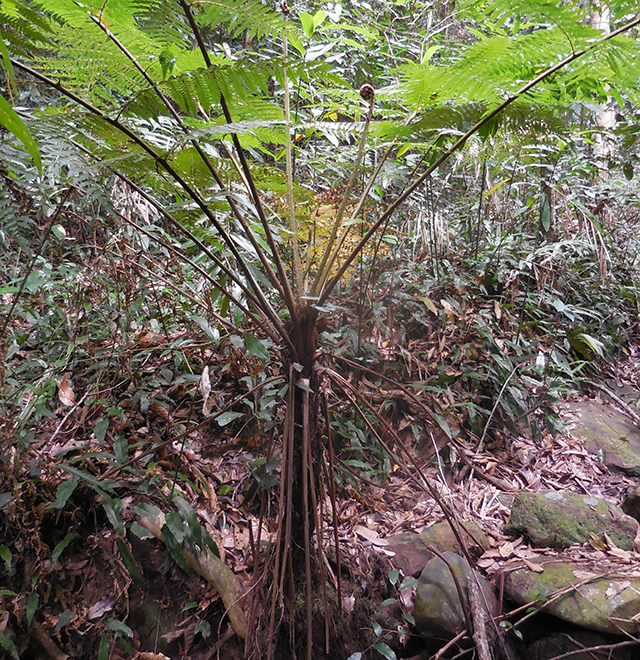 การม้วนงอจากปลายสู่โคนใบของใบอ่อนของเฟิร์น